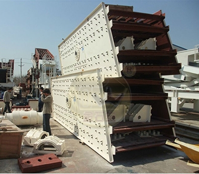 圓振篩利用普通電機拖動偏心軸,使篩體沿激振力方向做周期性 往復振動,物料在篩面做圓運動,從而達到篩分目的。圓振篩由振動源、篩體、篩網(wǎng)、減震裝置、底座等組成。