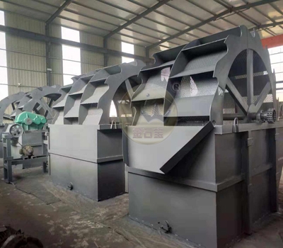 輪式洗砂機(jī)具有洗凈度高,結(jié)構(gòu)合理,處理量大,功耗小,洗砂過程中砂子流失少,尤其是洗砂機(jī)傳動部分均與水、砂隔離,故其故障率大大降低。