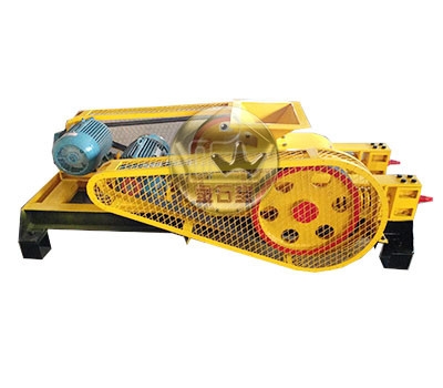 2、驅動機構:是由兩個電動機,通過三角皮帶傳動到槽輪上拖動輥輪,按照相對方向運動旋轉。在破碎物料時,物料從進料口通過輥輪,經碾壓而破碎,破碎后的成品從底架下面排出。